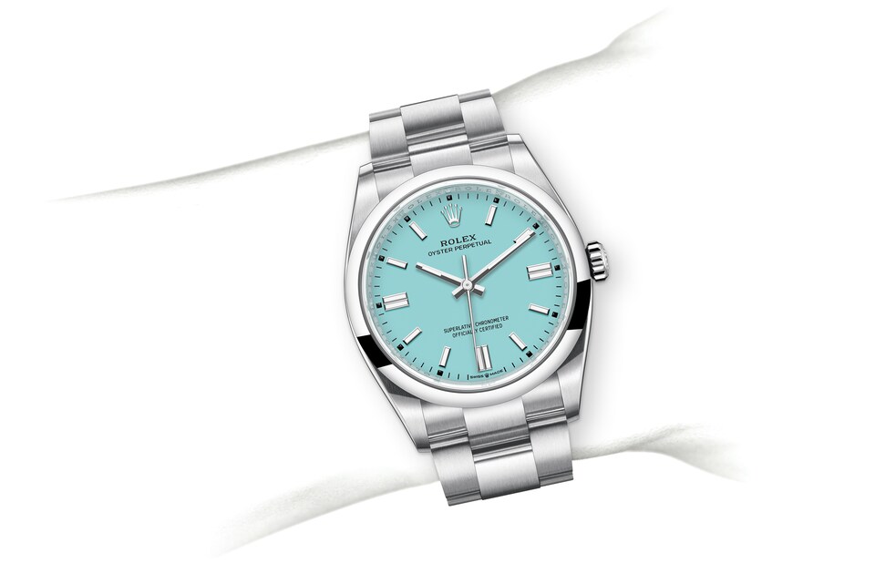 The Oyster bracelet is a perfect alchemy of form and function, aesthetics and technology. First introduced in the late 1930s, this particularly robust and comfortable metal bracelet with its broad, flat three-piece links remains the most universal bracelet in the Oyster collection. For the Oyster Perpetual models the Oyster bracelet is fitted with an Oysterclasp.