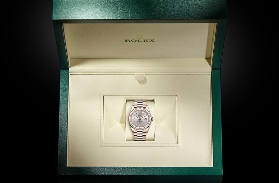 To preserve the beauty of its pink gold watches, Rolex created and patented an exclusive 18 ct pink gold alloy cast in its own foundry: Everose gold. Introduced in 2005, 18 ct Everose is used on all Rolex Oyster models in pink gold.