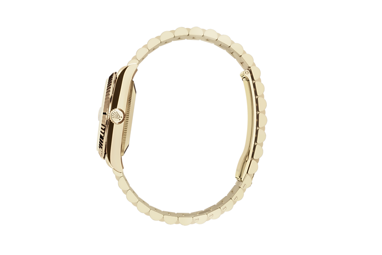 The Rolex fluted bezel is a mark of distinction. Originally, the fluting of the Oyster bezel had a functional purpose: it served to screw the bezel onto the case helping to ensure the waterproofness of the watch. It was therefore identical to the fluting on the case back, which was also screwed onto the case for waterproofness, using specific Rolex tools. Over time, the fluting became an aesthetic element, a genuine Rolex signature feature. Today the fluted bezel is a mark of distinction, in gold on this Datejust 31.