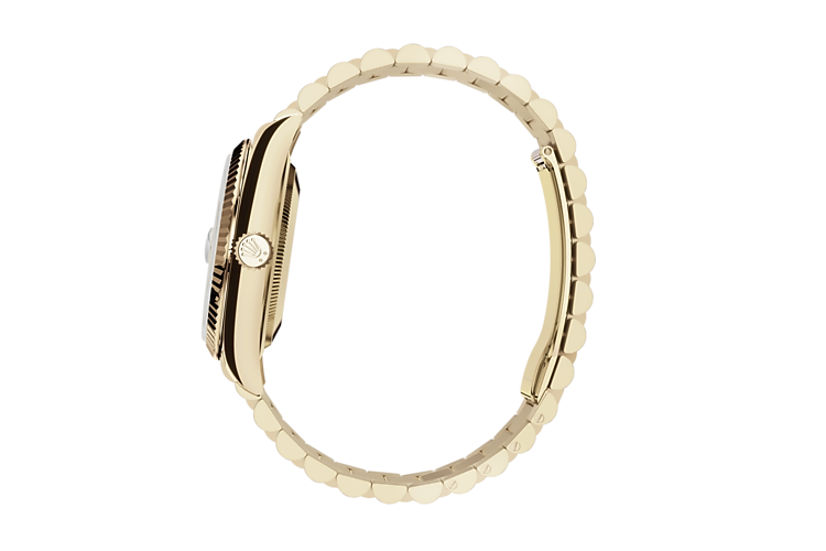 The Rolex fluted bezel is a mark of distinction. Originally, the fluting of the Oyster bezel had a functional purpose: it served to screw the bezel onto the case helping to ensure the waterproofness of the watch. It was therefore identical to the fluting on the case back, which was also screwed onto the case for waterproofness, using specific Rolex tools. Over time, the fluting became an aesthetic element, a genuine Rolex signature feature. Today the fluted bezel is a mark of distinction, in gold on this Day-Date 36.