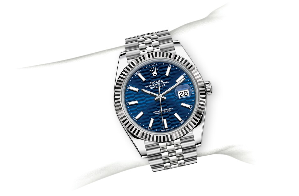 The Rolex fluted bezel is a mark of distinction. Originally, the fluting of the Oyster bezel had a functional purpose: it served to screw the bezel onto the case helping to ensure the waterproofness of the watch. It was therefore identical to the fluting on the case back, which was also screwed onto the case for waterproofness, using specific Rolex tools. Over time, the fluting became an aesthetic element, a genuine Rolex signature feature. Today the fluted bezel is a mark of distinction, in gold on this Datejust 41.